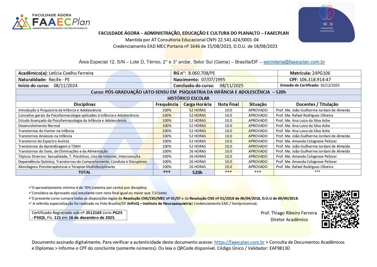 - Psiquiatra pela Residência Médica da Secretaria de Saúde do Recife (SESAU)